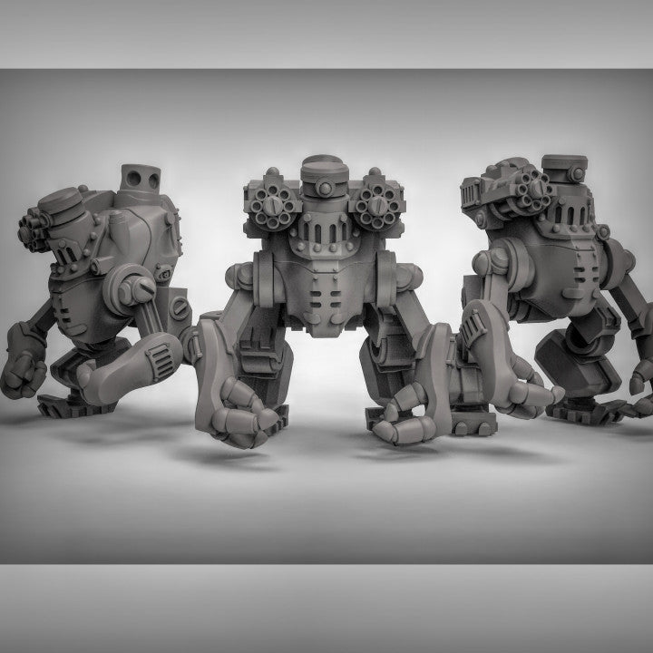 Schwer bewaffnet, massiv gebaut und mit einem Hauch Comic-Style: Diese Roboter-Miniaturen sind ein echtes Highlight für jedes SciFi-Setting! Im 32mm-Maßstab entworfen, sind sie perfekt für Tabletop, Wargaming oder Pen & Paper und bringen die richtige Mischung aus Wucht und Stil auf deinen Spieltisch.